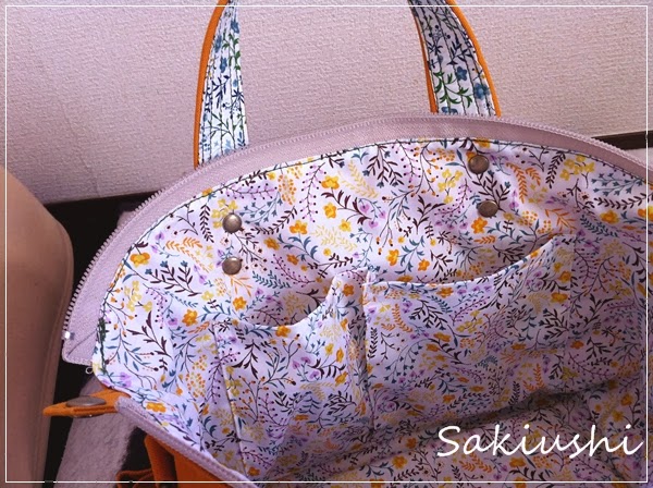 内側でイエローを使いきってしまったので持ち手裏だけブルーを使いました。